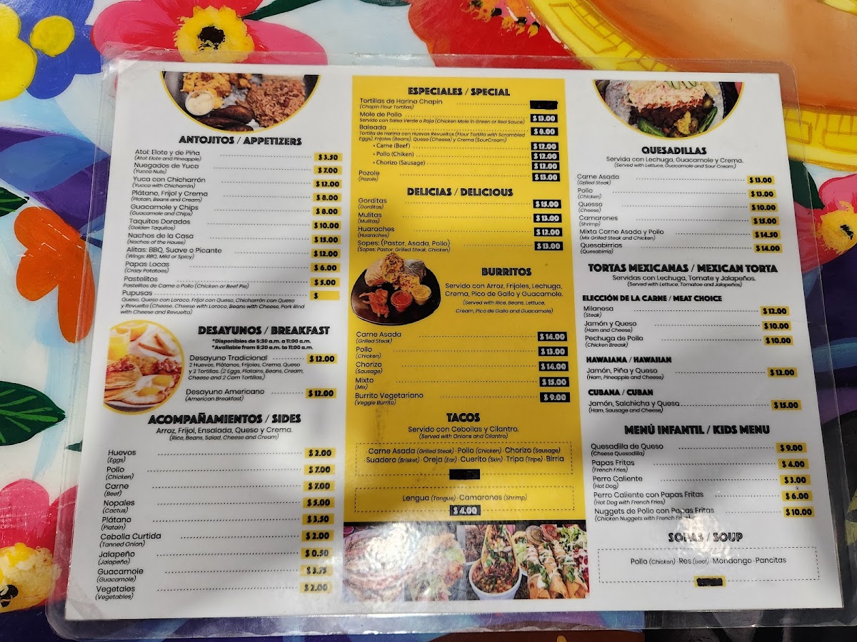 The menu at Taqueria El Tenampa offers a vibrant selection of authentic Mexican and Latin American dishes, making it a great choice for anyone craving flavorful and hearty meals. For a refreshing drink, you can try their Regular Coffee, perfect for a morning boost, or indulge in the sweet, cinnamon-infused Horchata, a traditional Mexican beverage. For those looking for something fruity, their Juice options are a great choice.