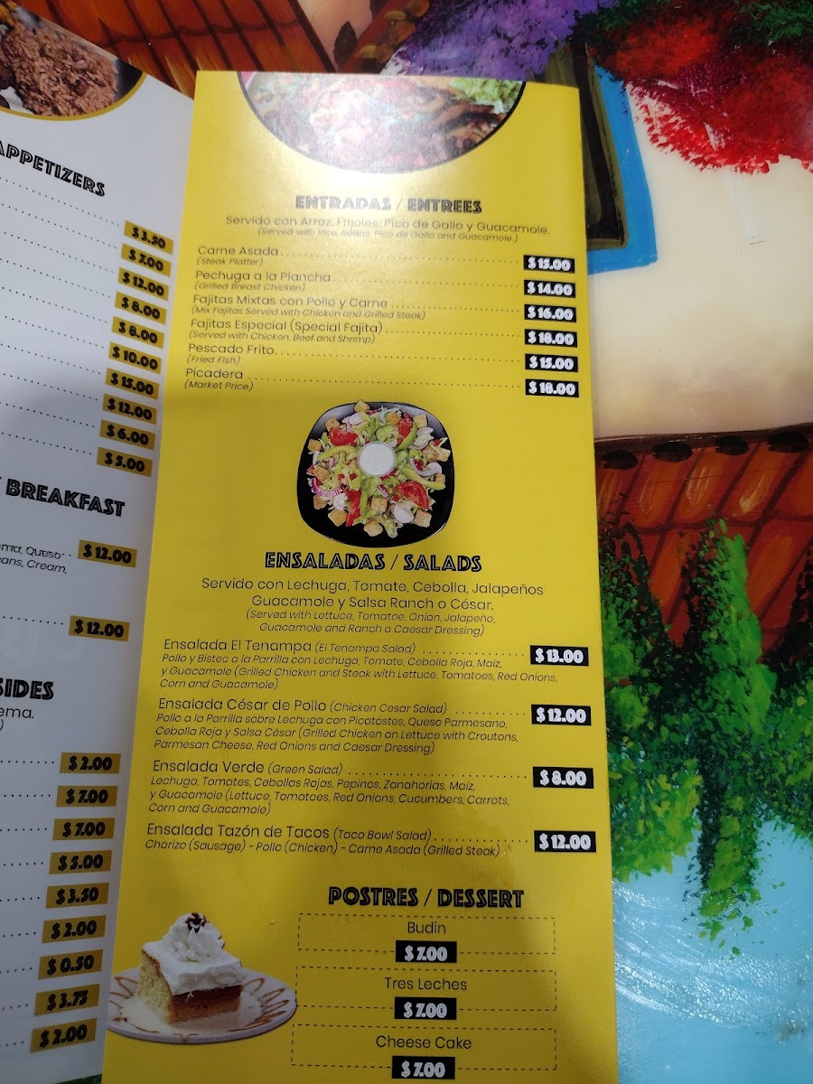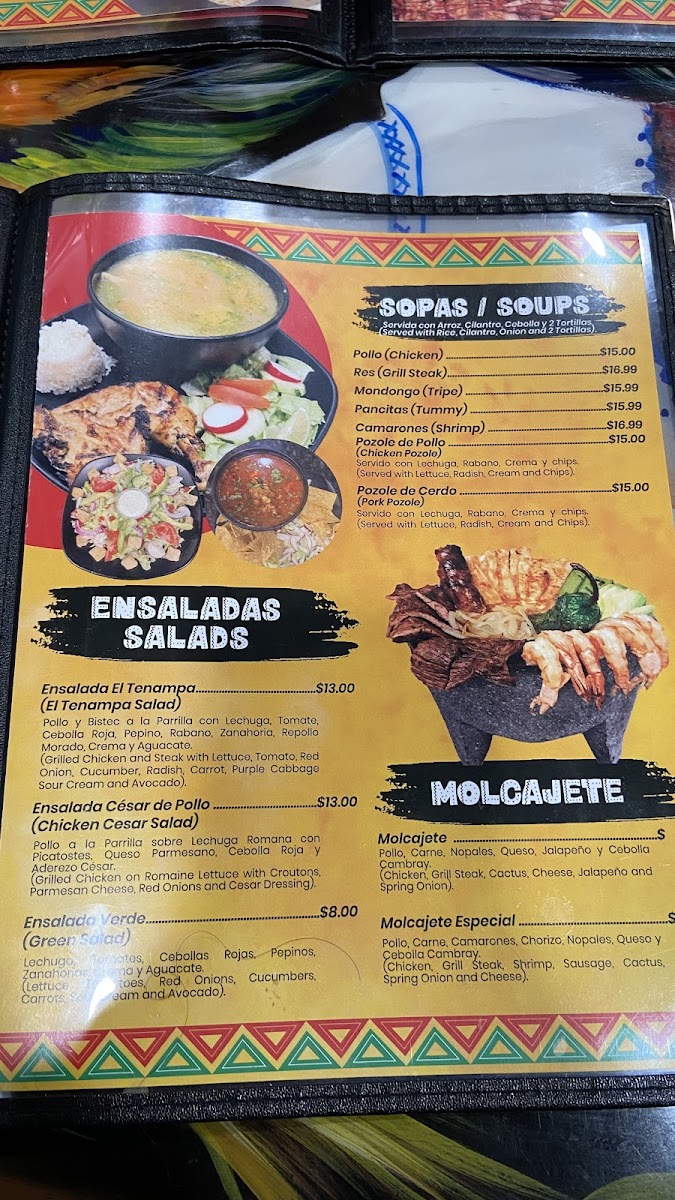 In summary, Taqueria El Tenampa’s menu features a range of delicious options from refreshing drinks like Horchata and Juice, to satisfying meals like Steak Quesadilla, Sopa de Mondongo, and Tacos de Carne. Whether you're in the mood for a light snack or a hearty meal, there’s something for everyone to enjoy.